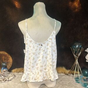 New with tags. This top has adjustable straps and measures 18 inches pit to pit. This can measure from 21 to 25 inches long depending on the strap adjustment.