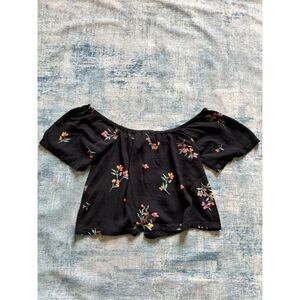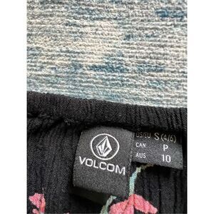 Volcom Black Pink Orange Bud Seriously Button Front Short Sleeve Top Small