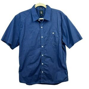 Volcom Shirt, Classic Fit, Button Down, Short Sleeves, Navy Blue, Size Large