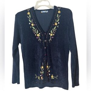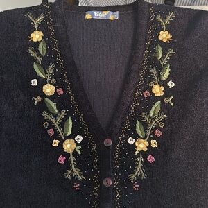 Volga Dark Blue Beaded Floral Embroidered Cardigan Women’s XL Cottagecore Event
