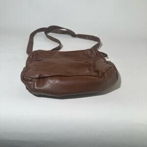 The shoulder bag, crafted in a warm brown leather, combines style and functionality with its slouchy design and adjustable strap. Perfect for everyday use, this medium-sized bag offers ample space for your essentials while adding a touch of casual elegance to any outfit.