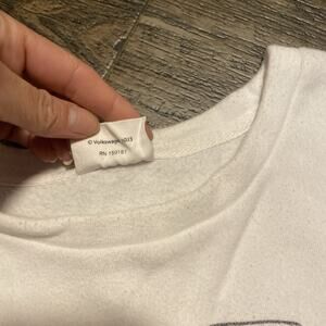 White factory cropped. Volkswagen brand licensed shirt. Has some pilling/wash wear.