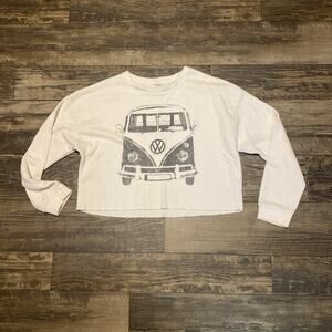 Volkswagen Bus Cropped Sweatshirt VW Van White Womens MEDIUM Crewneck