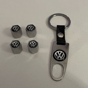 Volkswagen metal keychain & valve Stem caps in black NWT