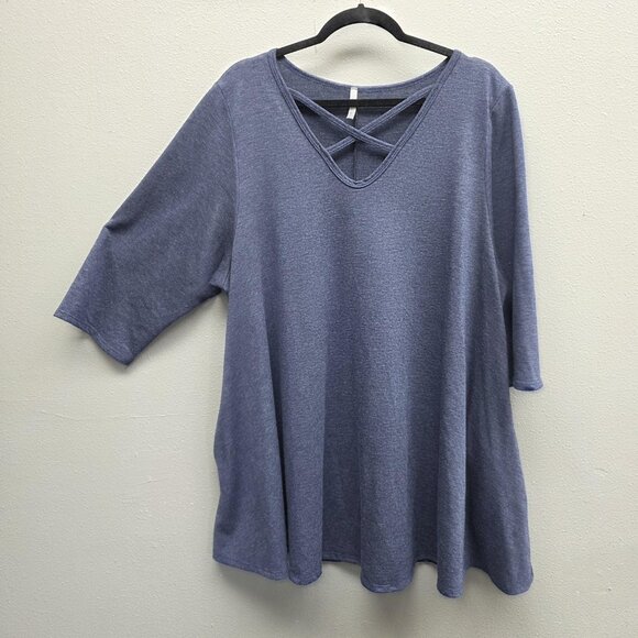 Voll Shirt Womens 3XL Blue Criss Cross V Neck 3/4 Sleeve Tunic Swing Pocket Top