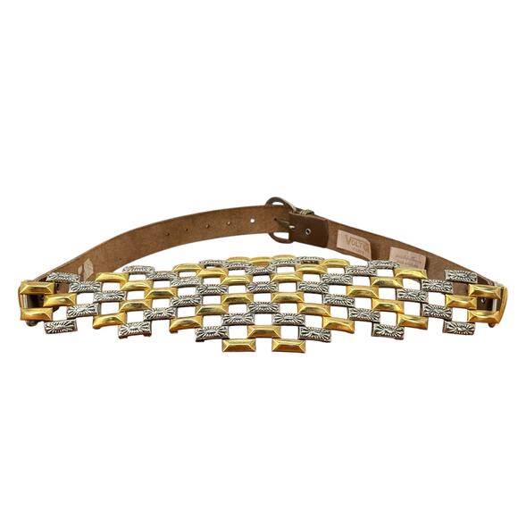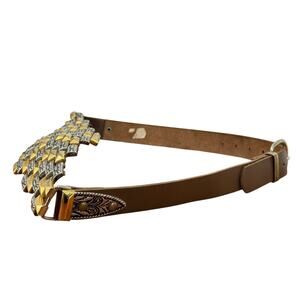 Voltige Paris Belt Cosplay Statement VTG Women's SZ 32 Brown Gold Silver Leather