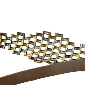 Voltige Paris Vintage Statement Military Inspired Belt Women SZ 32 Brown Gold Silver Leather Statement Party France