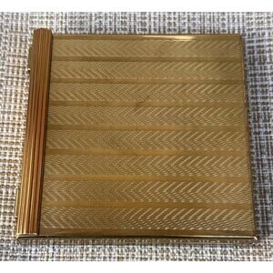 Volupte Vintage Chevron Gold Tone Swinglok Makeup Compact w/ Mirror And Pouch
