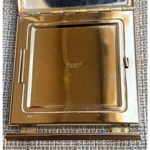 Beautiful vintage Volupte compact! Measures 3”x 3” in great vintage condition. Mirror has flaw in upper corner. Please see all photos and feel free to ask if you have any questions. Thank you!