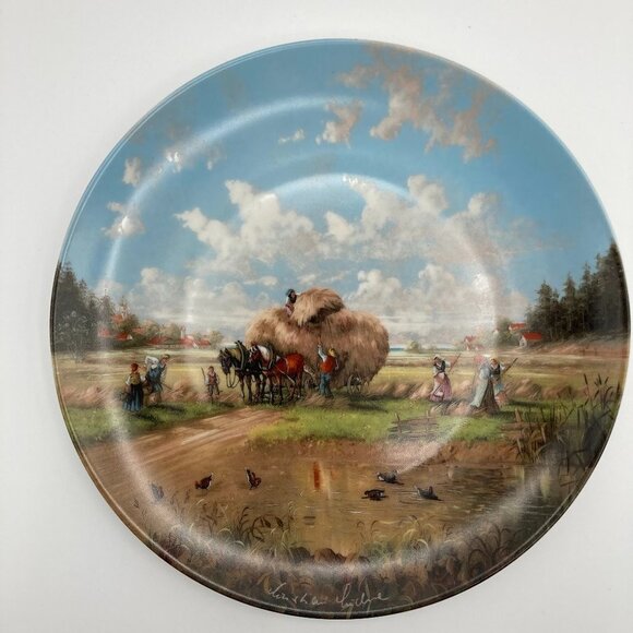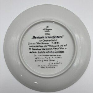 Von Christian Luckel In The Fields At Harvest Time Vintage Collectible Plate from the Bradford Exchange 1986. Made in Germany, this beautiful collectible plate is 7 1/2" wide. In original box with certificate of authenticity and original paperwork. Beautiful rare vintage collectable plate.