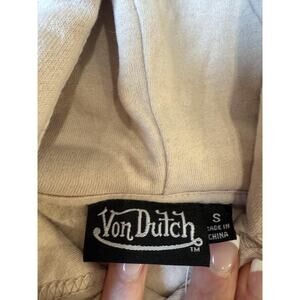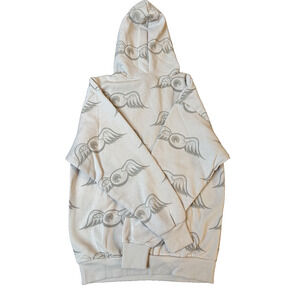 Von Dutch Hoodie Mens Small Beige Tan Pullover Fleece Winged Eyeball AOP Graphic