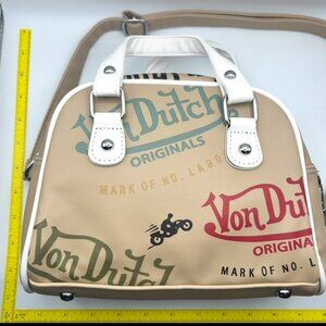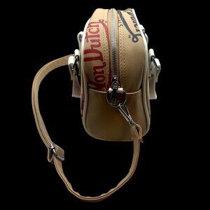Von Dutch Mini Bowling Bag Beige Logo Graffiti Y2K Purse – Adjustable Strap