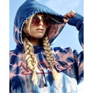 Von Dutch 2 piece SET Blue Pink Tie Dye Red Rhinestone Logo Oversize Hoodie & Sweats