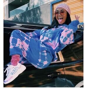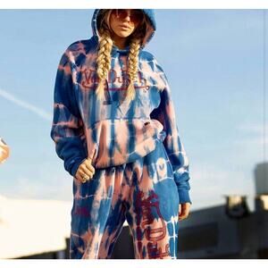 Von Dutch SET Blue Pink Tie Dye Red Rhinestone Logo Oversize Hoodie & Pants