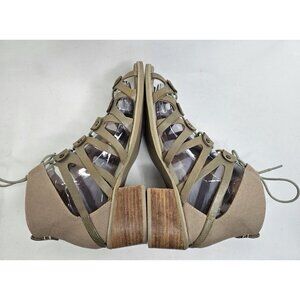 Von Dutch Tighten Up Leather Olive Tie Gladiator Low Heel Sandal Women Size 7.5