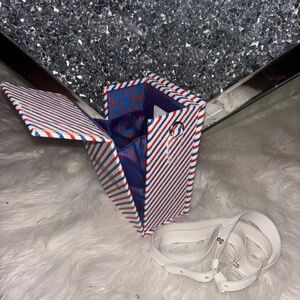 Owned for 1 year, very small and cute size! Barber shop themed. Please text me for more information and discount.(does come with strap)