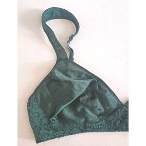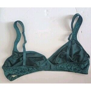 Von Raalte Bralette Bra Size 36B Unlined Satin Lace Dark Green Plunge Vintage