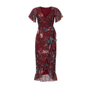 Vone Mireya Dress Red Floral Printed Lace Side Flutter Slit