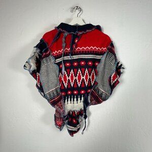 VonksArt Womens Handmade Knitted Poncho Top Art to Wear Boho Red Navy New $79