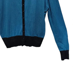Vintage style long sleeve cardigan with floral embroidery and contrast button front fastening.