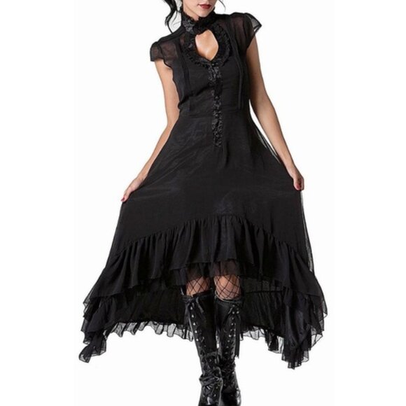 Voodoo Vixen Victorian Gothic Black Chiffon Ruffled High Low Dress NAT1