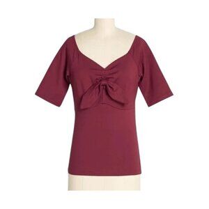 Voodoo Vixen XXL Burgundy Bow Front V Neckline Top With 3/4 Sleeves