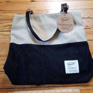 Cream and black flannel tote. New condition, never used. Can also be worn as a backpack.