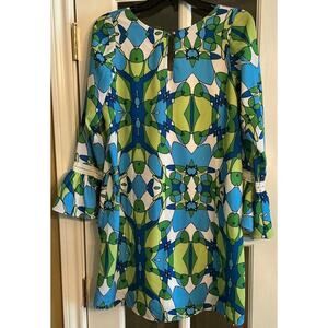 Voom Woman Dress Long Bell Sleeve Size S Key Hole In The Back With Loop Button