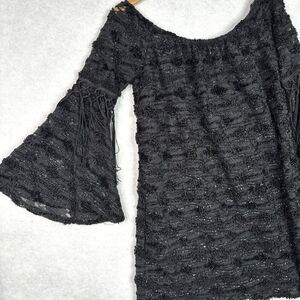 Voom by Joy Han Black Lace Mini Dress Medium Bell Sleeve Lined Goth Boho