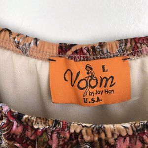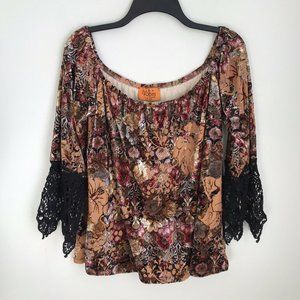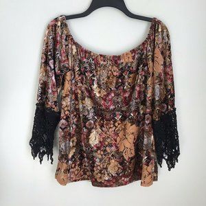 Voom by Joy Han Multi-Color Off Shoulder Velvet Crochet Trim Blouse