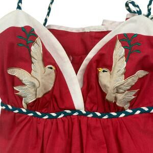 Voom by Joy Han Red Doves Mini Dress Y2K Rockabilly also Paris Braided Rope Belt Detail with embroidered Doves on Chest. Adorable!