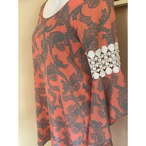 Voom by Joy Han Womens Mini Boho Dress X SMALL Paisley Coral Crochet Retro 70s