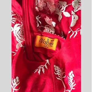 Voom by Joy Han dress. Red halter-style dress with intricate gold floral Size XS
