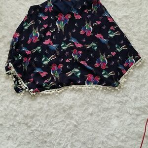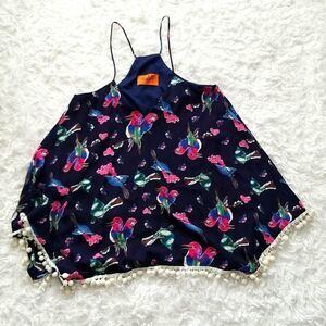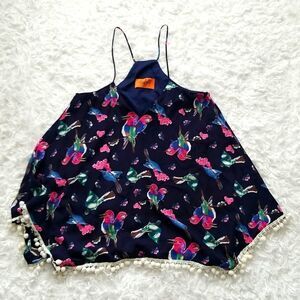 Preowned spaghetti Strap Blue Floral Print Blouse with tassel hem in excellent condition.