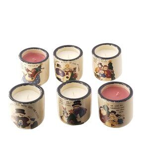 Votives Snowman Family Friends Candle Crocks AND Candles Merry Christmas Set