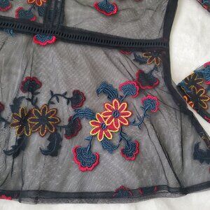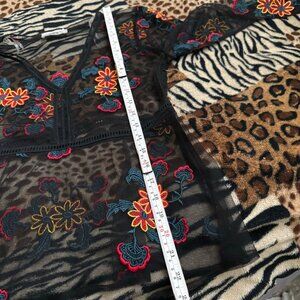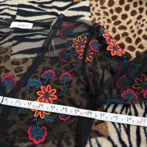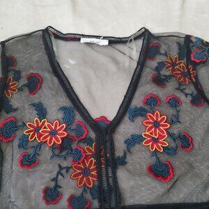 Vov womens blouse see through mesh Vneck Long Sleeve sz medium Black color