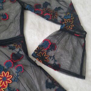 Vov womens blouse see through mesh Vneck Long bell Sleeve