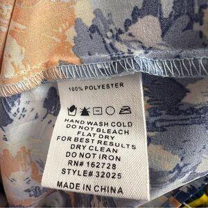 Voy Orange & Blue Abstract Print Ruffle Sleeve Blouse SZ SM