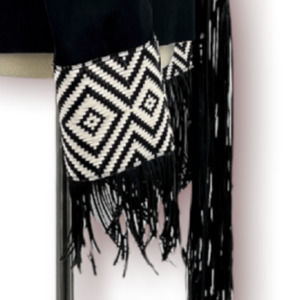 Voyage Italian Black White Geometric Woven Fringe Blazer US 8 IT 44 Designer
