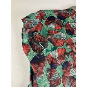 Voyage at Ease Layered Leaf Print Shirt Dress Red & Green Size 8