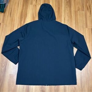 This sleek black raincoat is designed to keep you dry and comfortable with its full-length zipper and protective hood. Its minimalist design ensures a stylish look while providing excellent coverage against the rain.