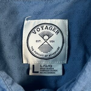 Voyager Men's Button Up Blue Short Sleeve Shirt Large