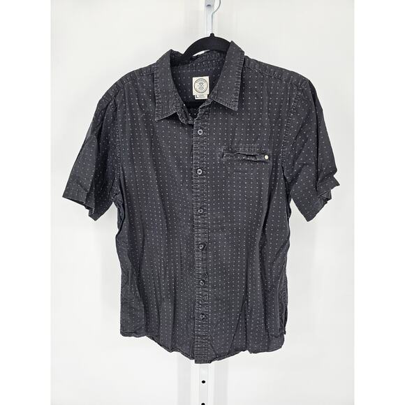 Voyager Mens Sz L Short Sleeve Button Up Shirt Gray White Dot Print