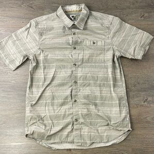 Voyager Men’s Tan and Green Collared Button Down Short Sleeve Shirt, size Medium