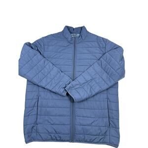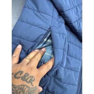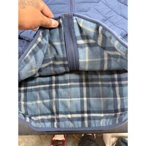 Voyager Men’s XXL Quilted Puffer Jacket Navy Blue Fleece Plaid Lined Zip-Up Coat