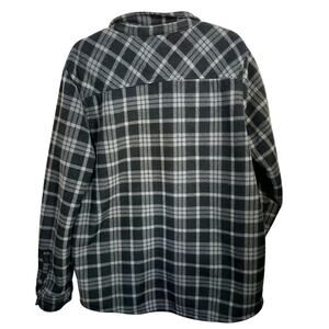Voyager Remote Fleece Shirt Jacket in gray and black plaid pattern.