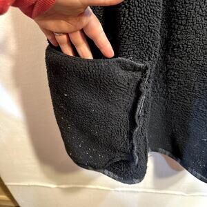 Keep the heat in and the cold out. This is a really heavy fleece shirt jacket that is sherpa lined, has a front snap closure and relaxed fit.