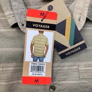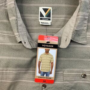 VOYAGER SHIRT MENS M MEDIUM BEETLE STRIPED BUTTON UP STRETCH WOVEN SHORT SLEEVE