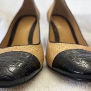 Voz vintage woven raffia pumps with croc cap toe heels gently loved Size 8-1/2