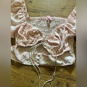 Vrg grl twist crop top tie 2 button shirred bustier abstract poplin puff balloon